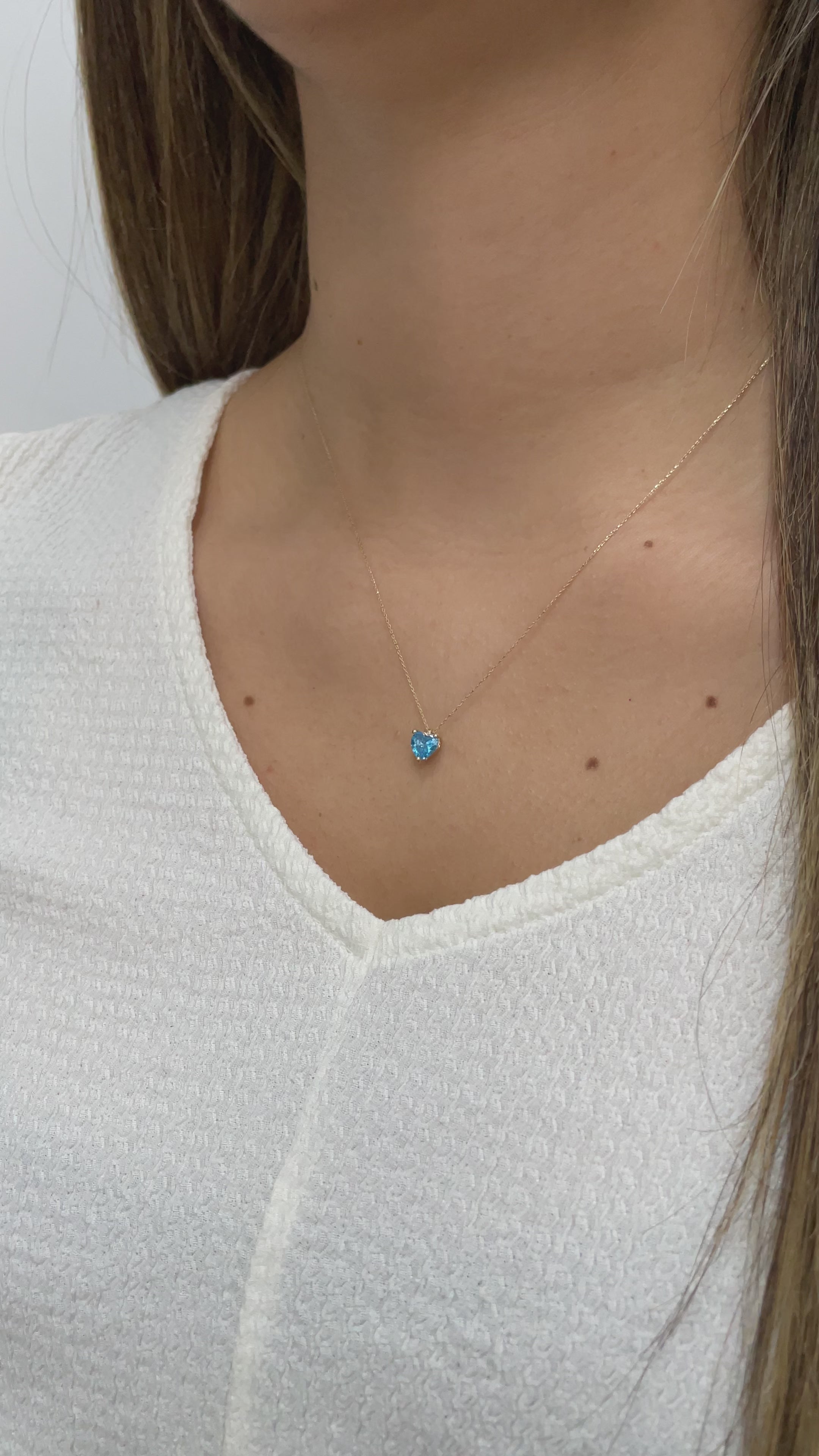 Blue Topaz Heart Necklace 14K Solid Gold, December Birthstone