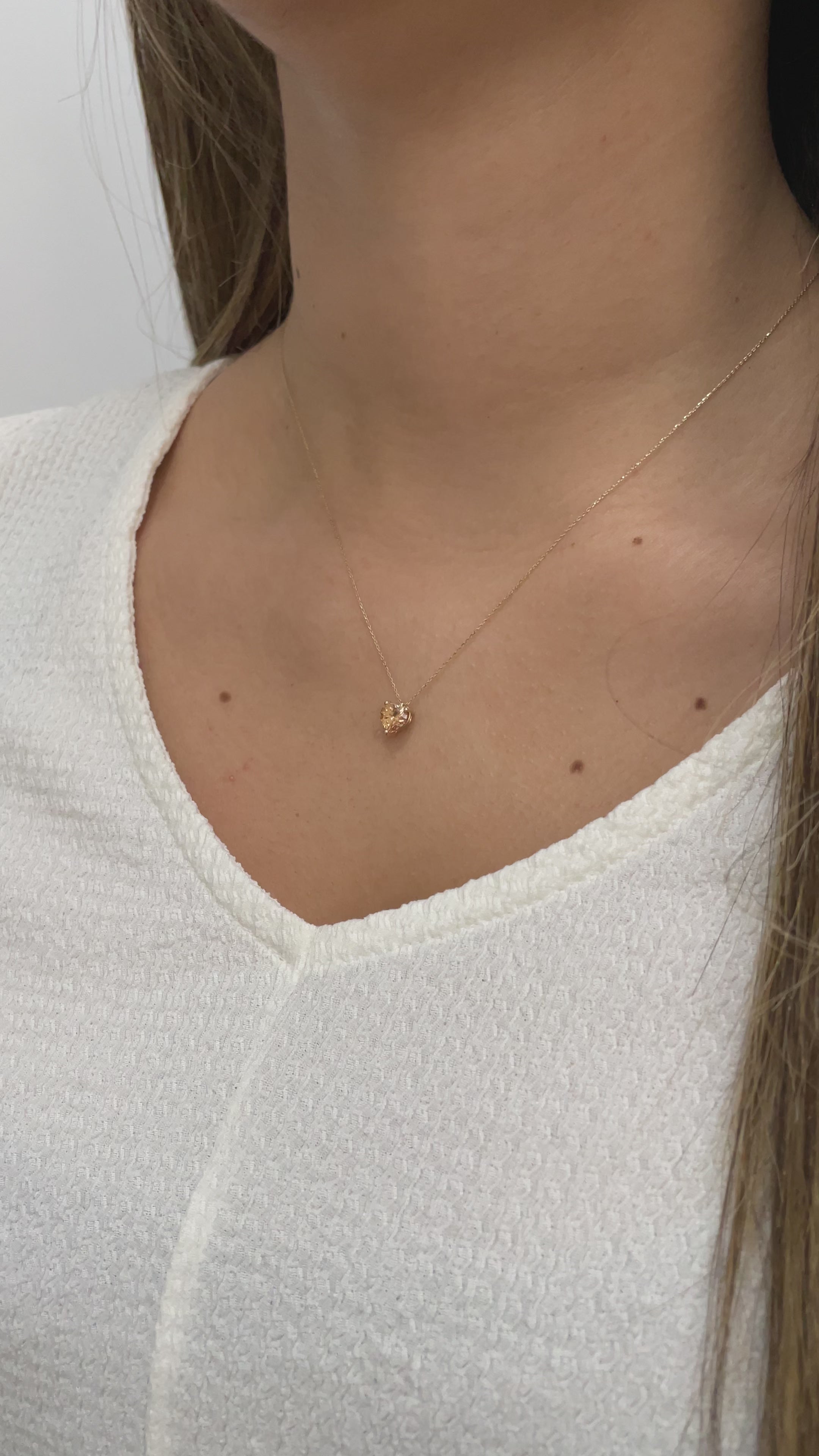 Citrine Heart Necklace 14K Solid Gold, November Birthstone