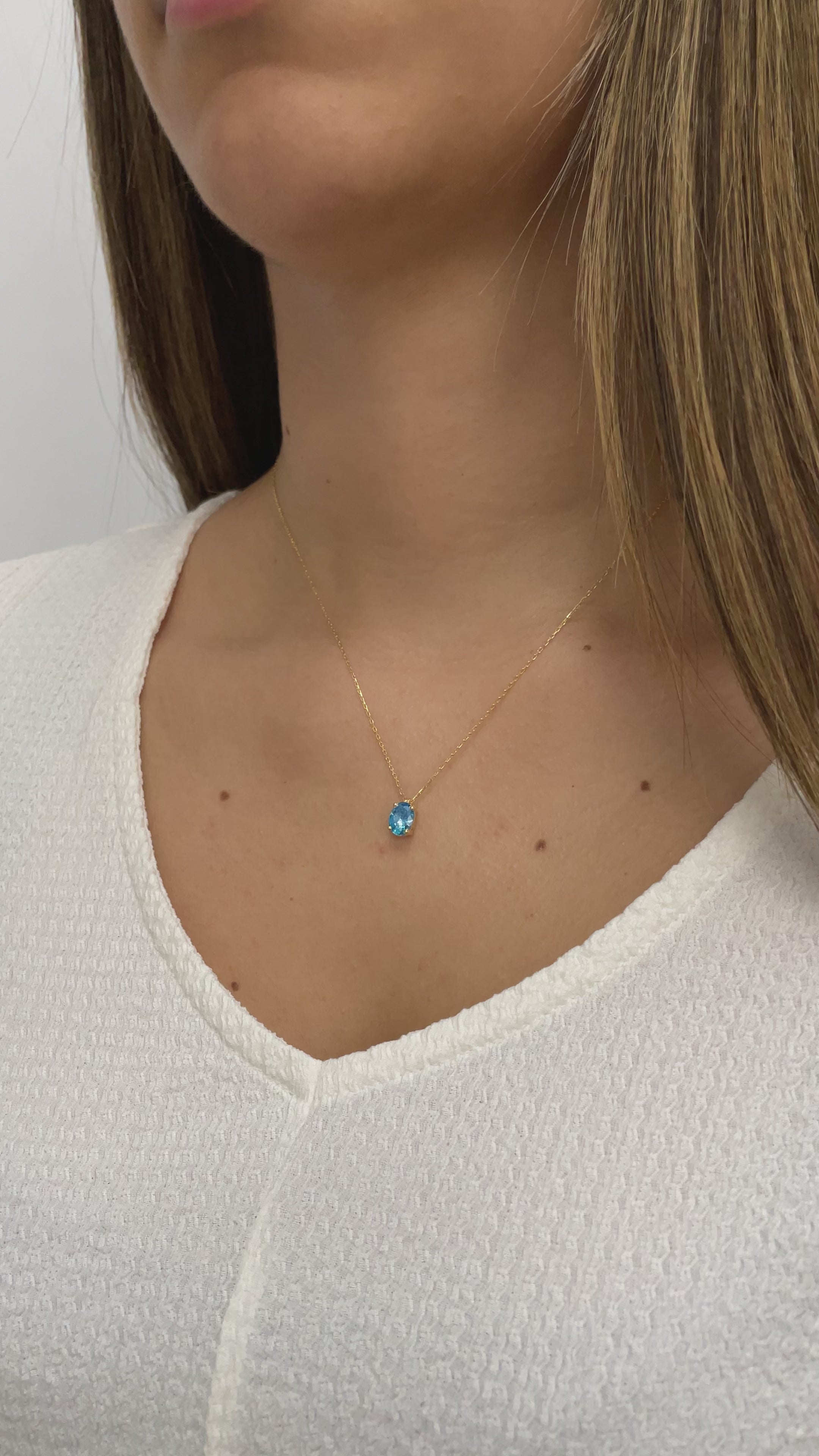 Oval Cut Blue Topaz Necklace 14K Solid Gold, December Birthstone