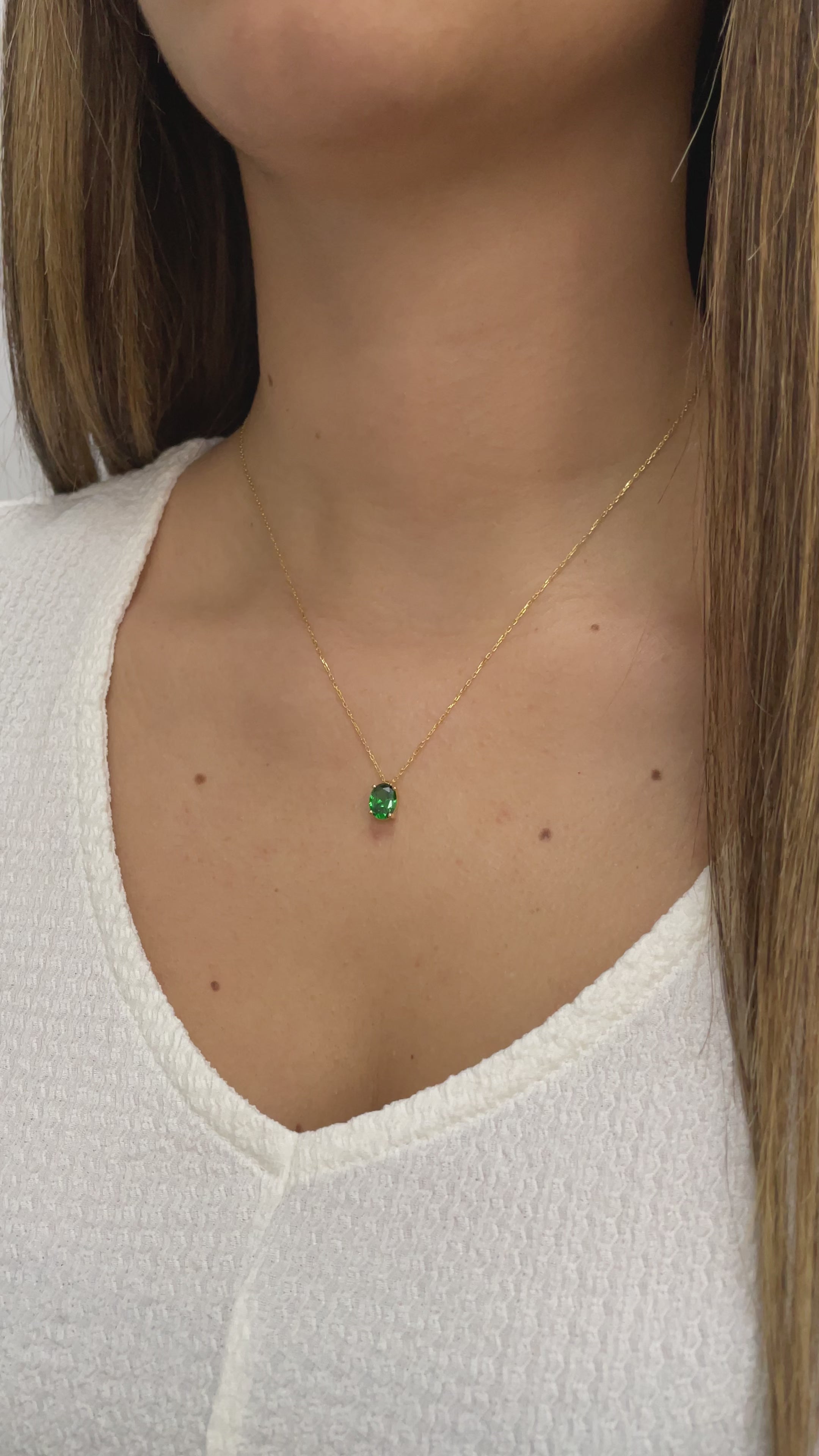 Oval Cut Emerald Necklace 14K Solid Gold, May Birthstone