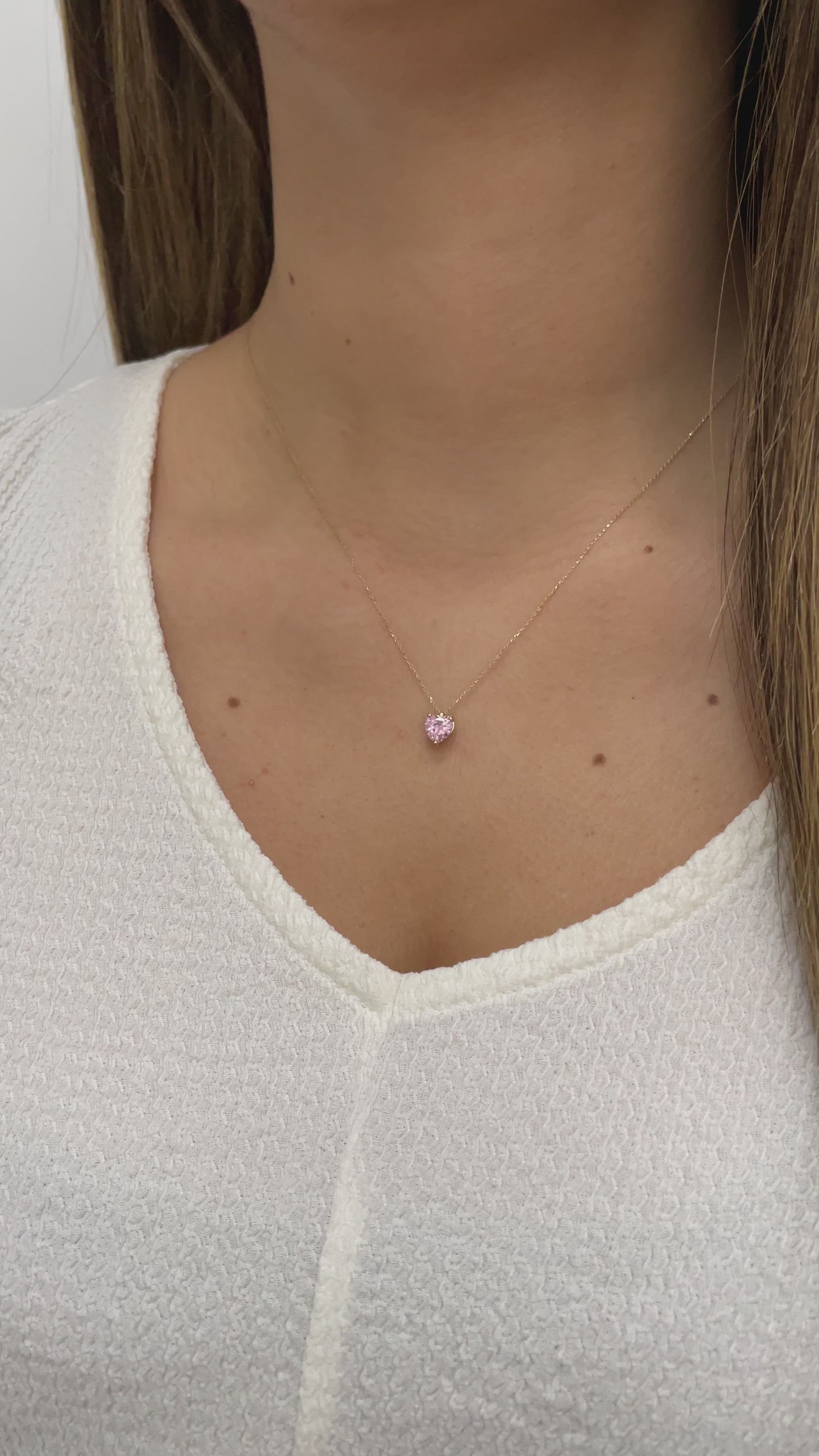 Pink Tourmaline Heart Necklace 14K Solid Gold, October Birthstone