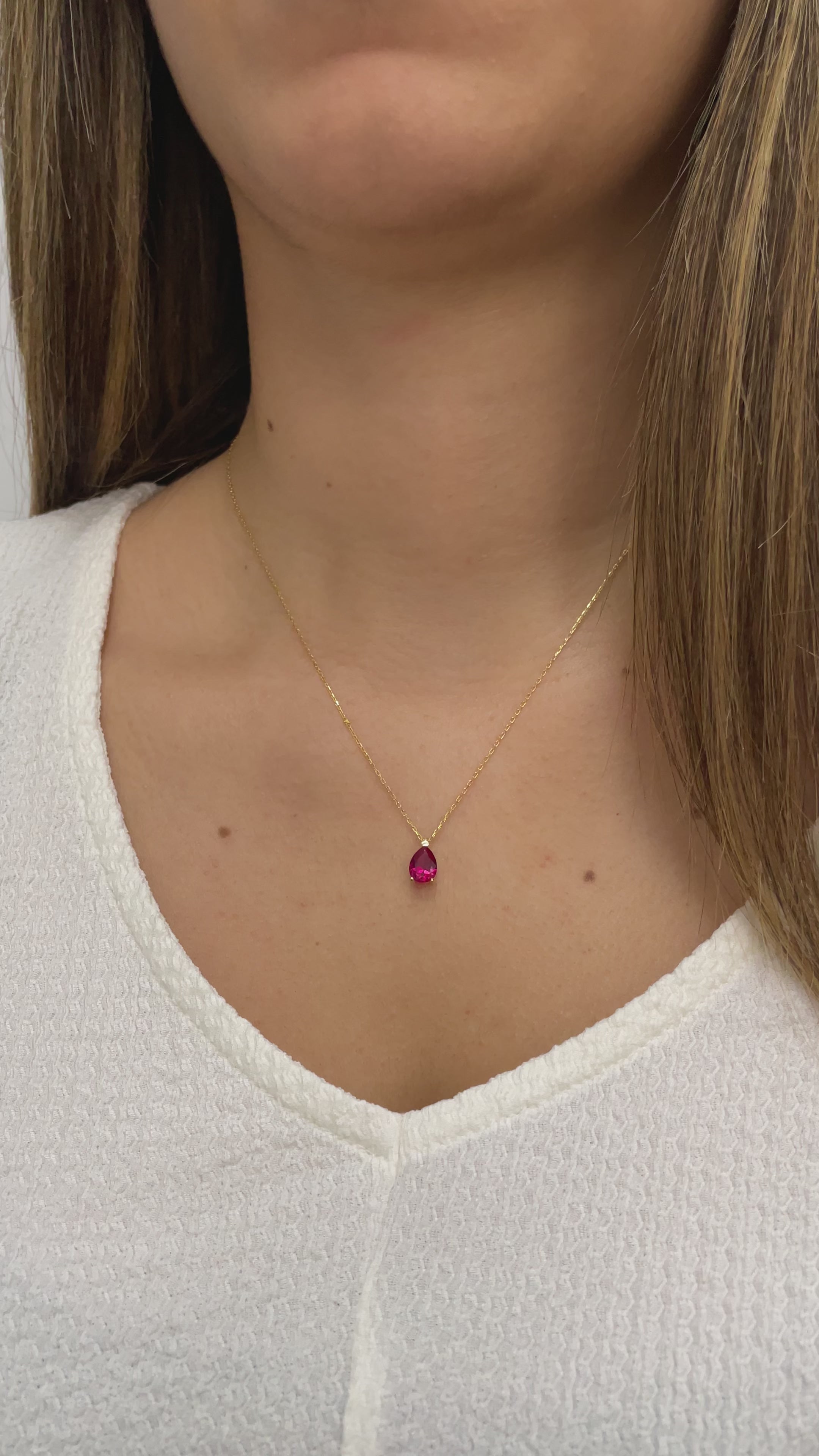 Ruby Drop Necklace 14K Solid Gold, Teardrop July Birthstone