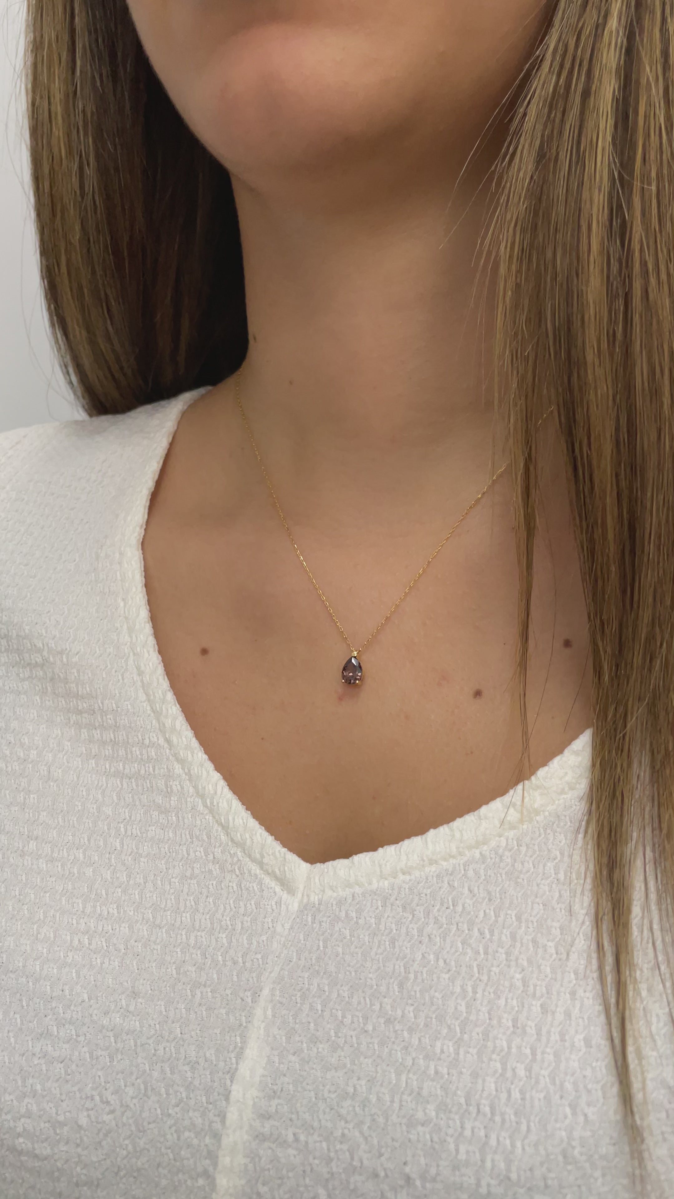 Smoky Quartz Drop Necklace 14K Solid Gold
