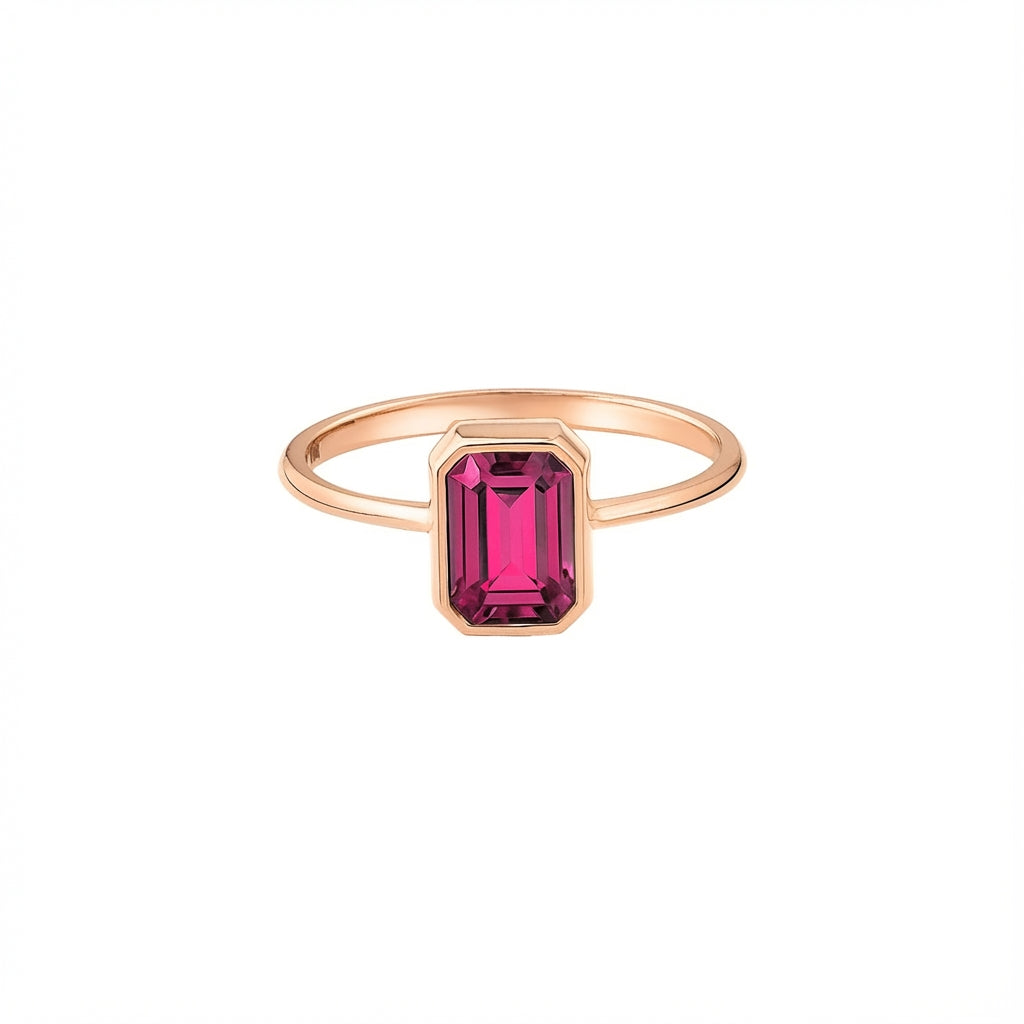 Ruby Rectangle Ring 14K Solid Gold, July Birthstone, Baguette Cut Design
