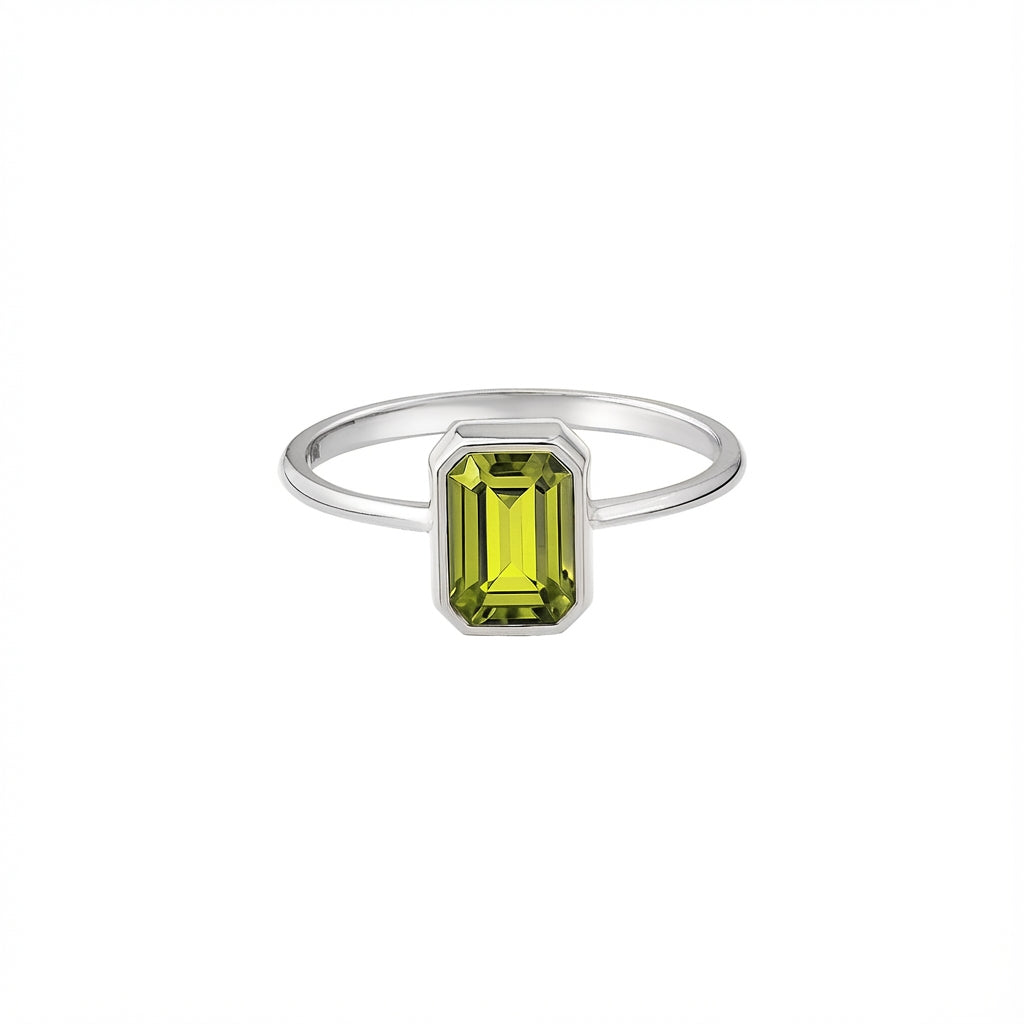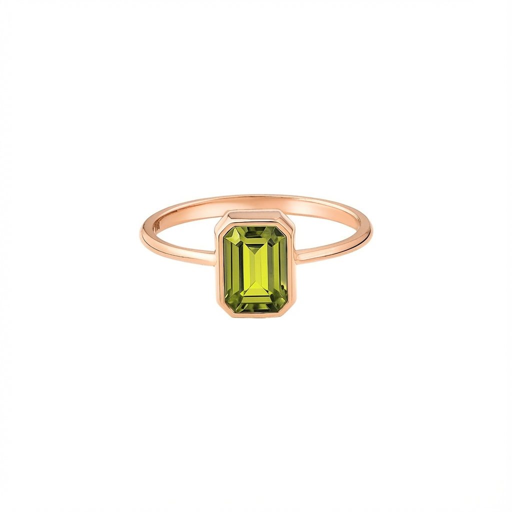 Emerald Rectangle Ring 14K Solid Gold, May Birthstone, Baguette Cut Design