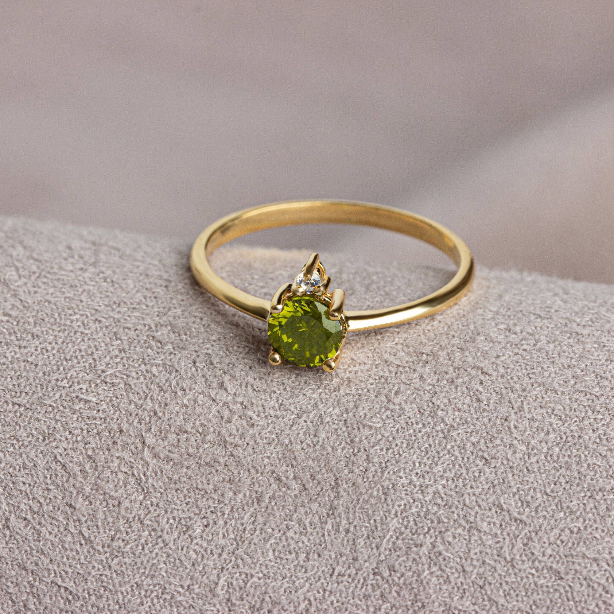 Round Peridot Ring in 14K Solid Gold with Single Stone Real Diamond, August Birthstone Jewelry