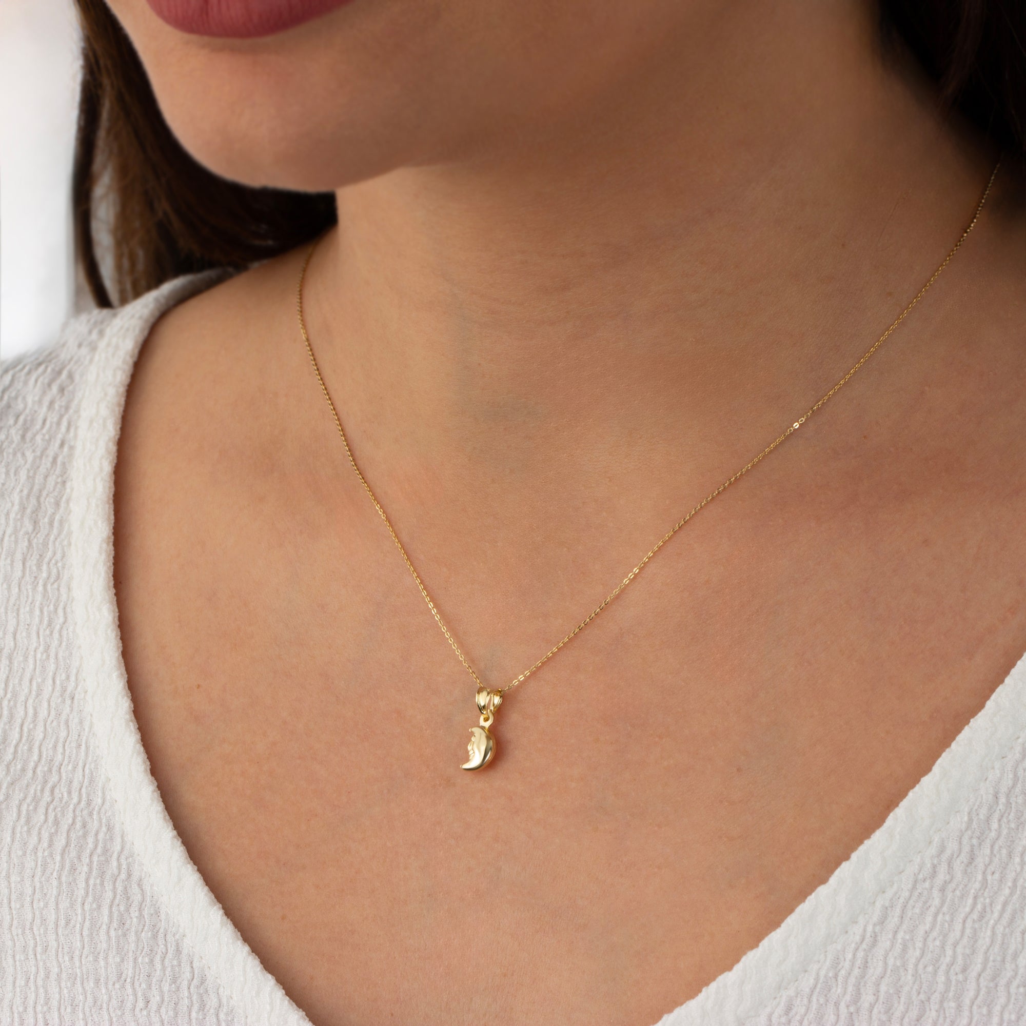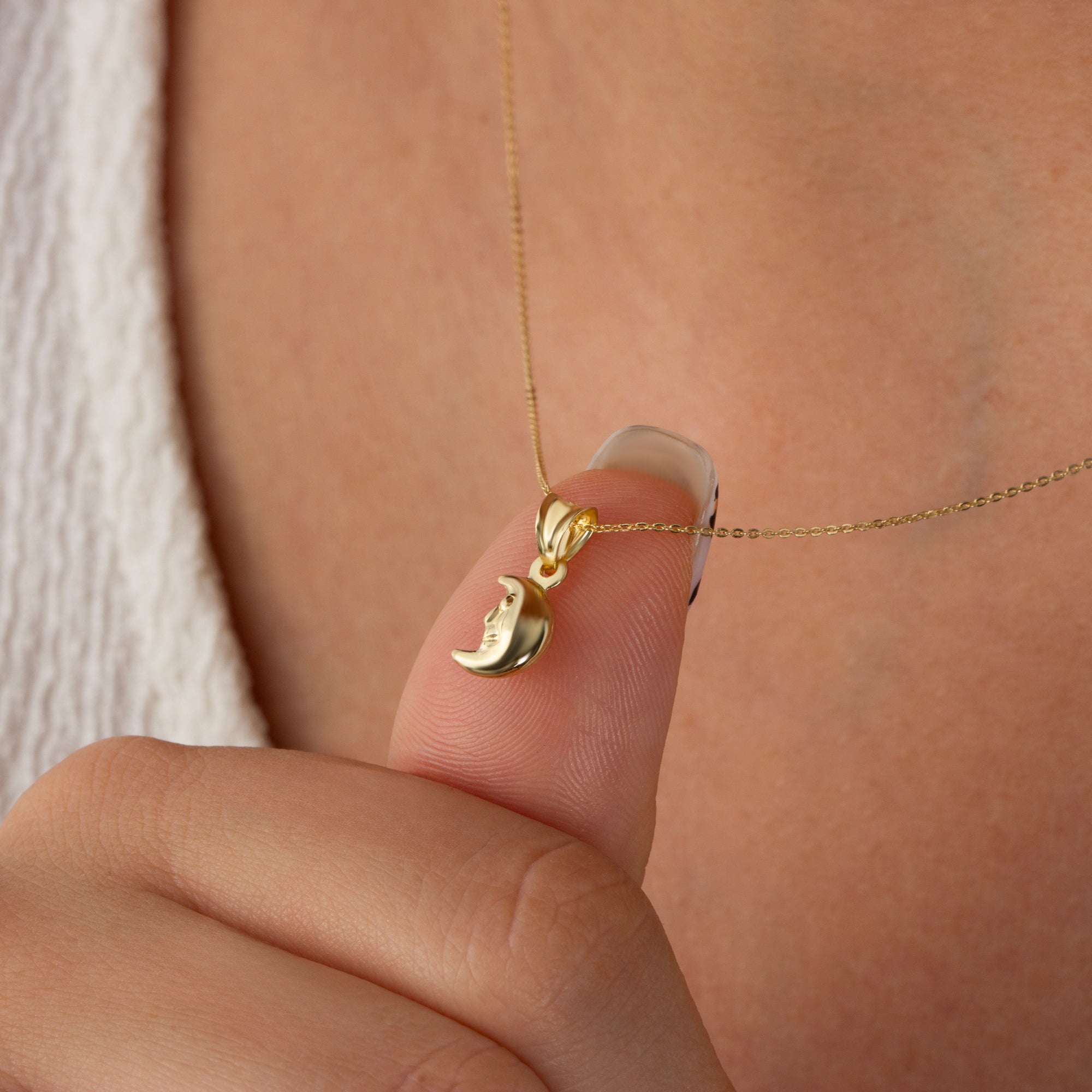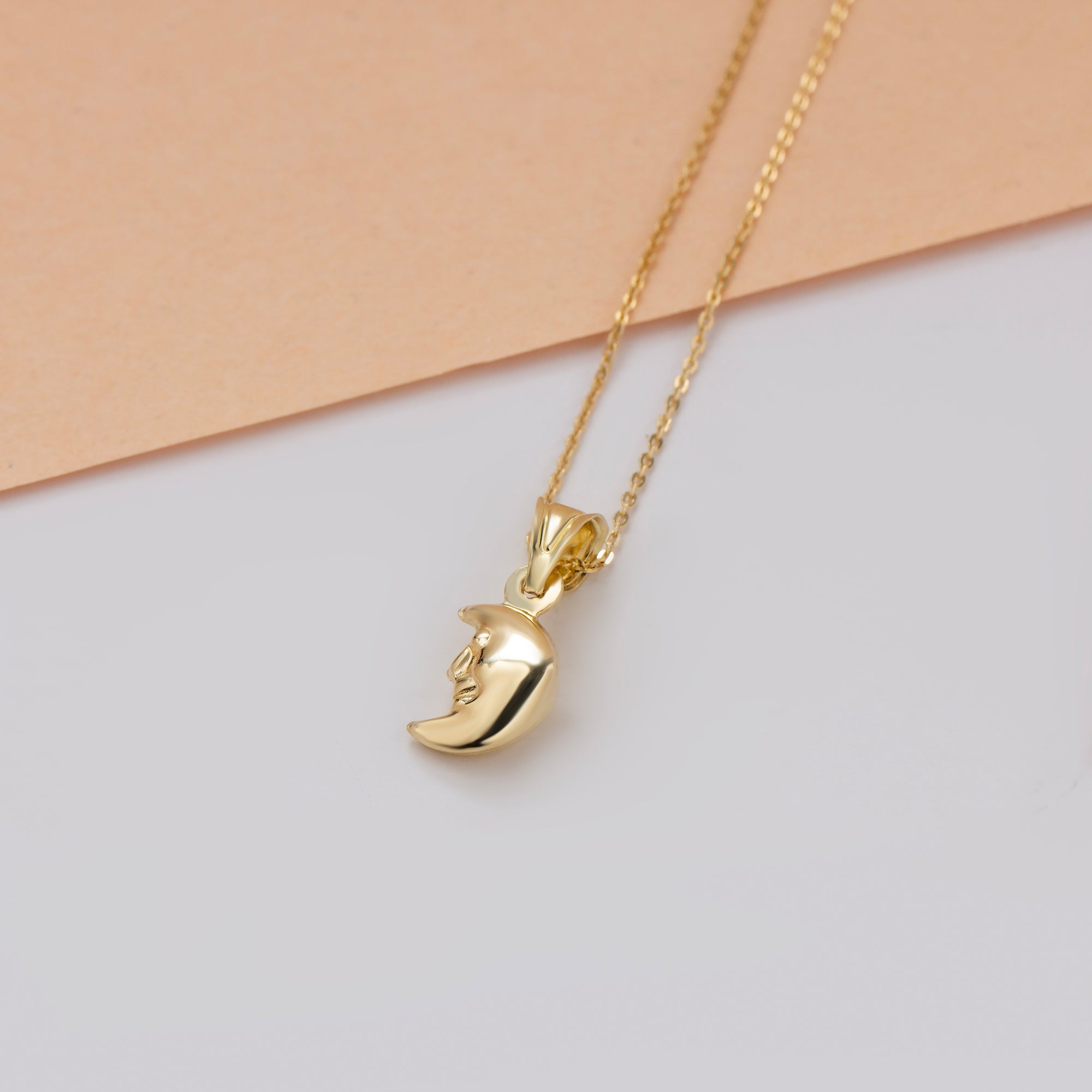 Crescent Moon Necklace 14K Solid Gold Pendant