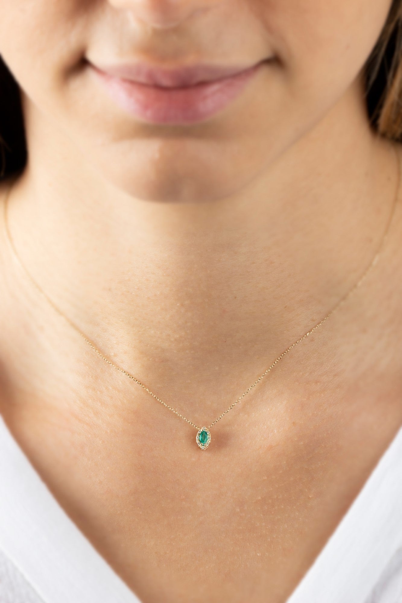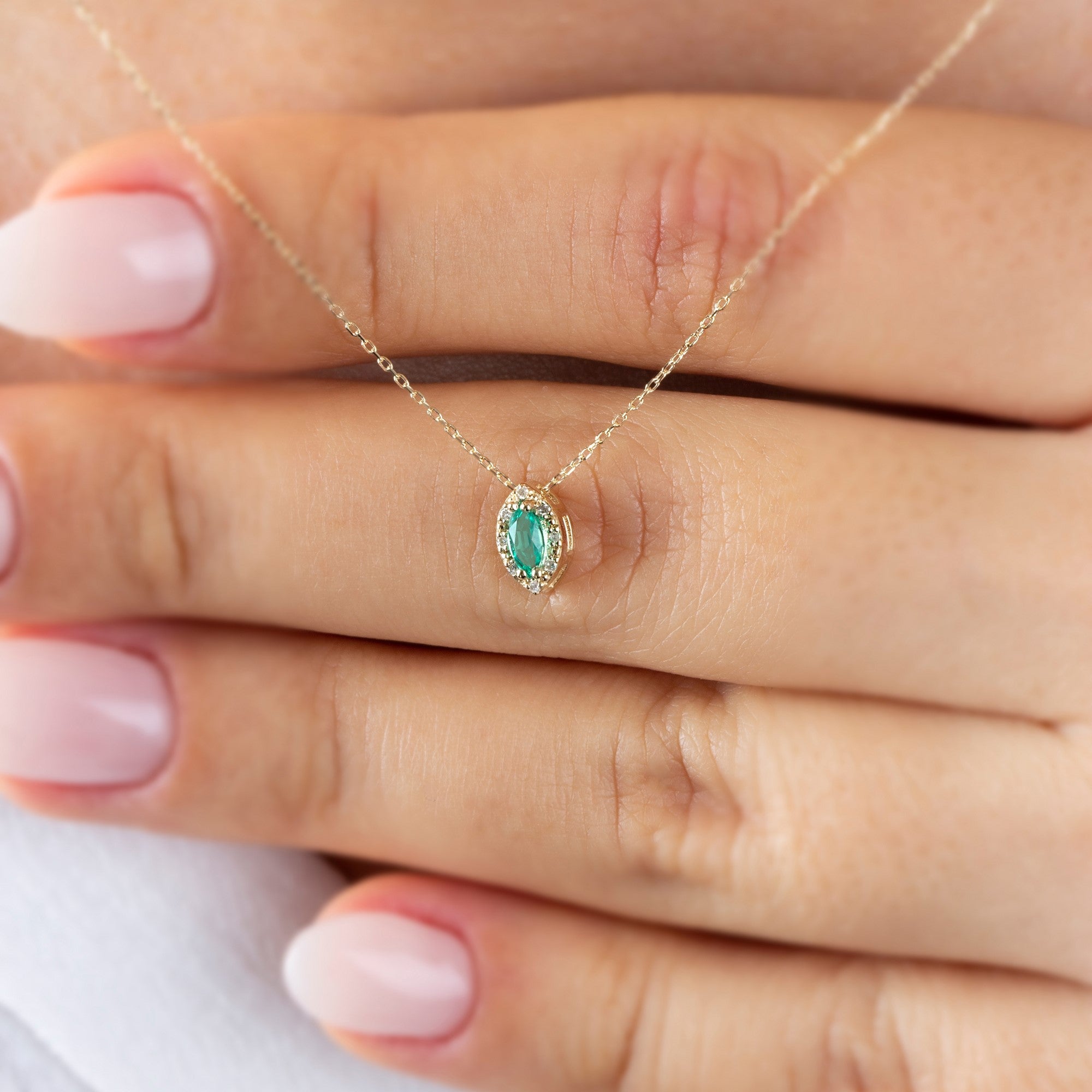 Emerald Oval Necklace in 14K Solid Gold | May Birthstone Pendant