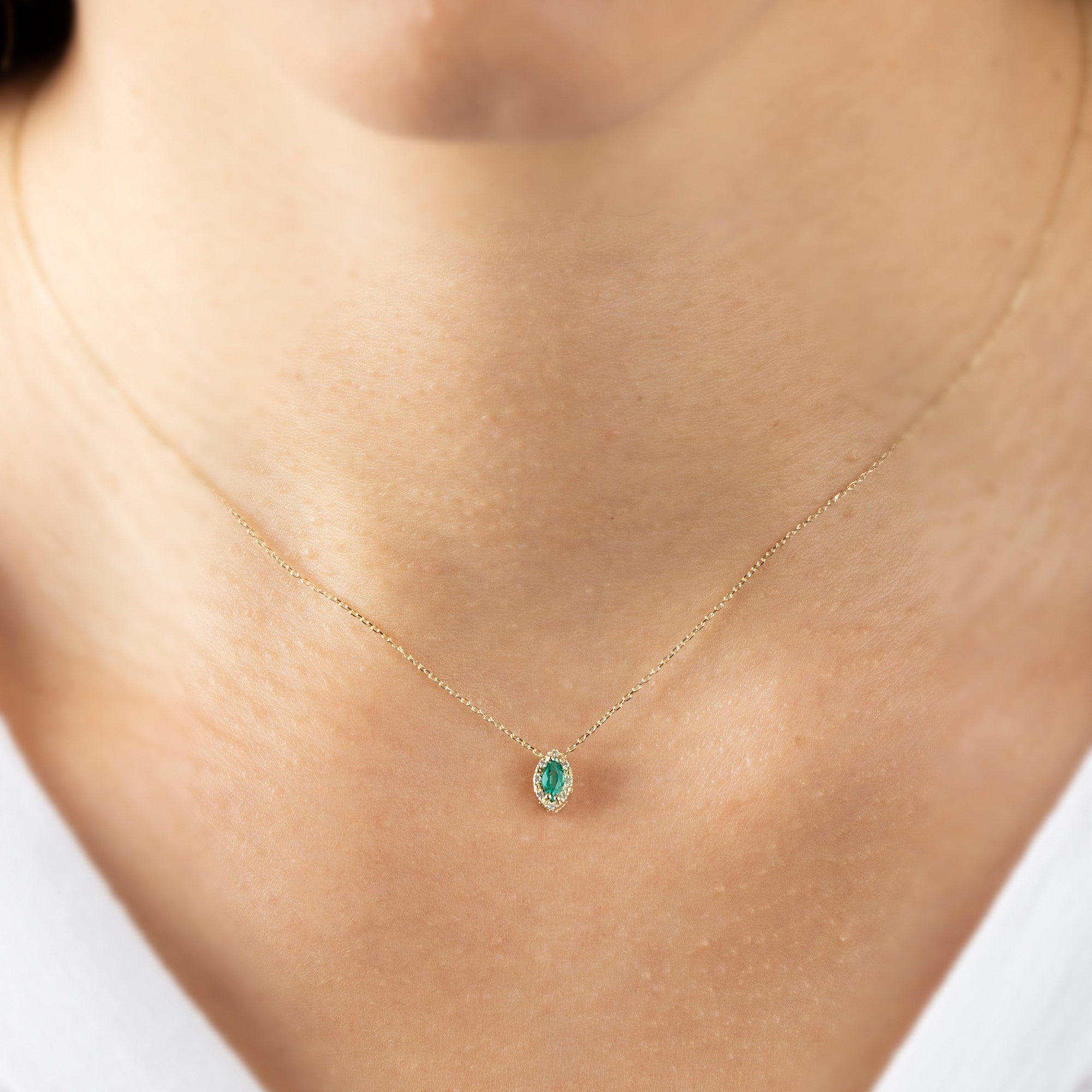Emerald Marquise Necklace in 14K Solid Gold | May Birthstone Pendant