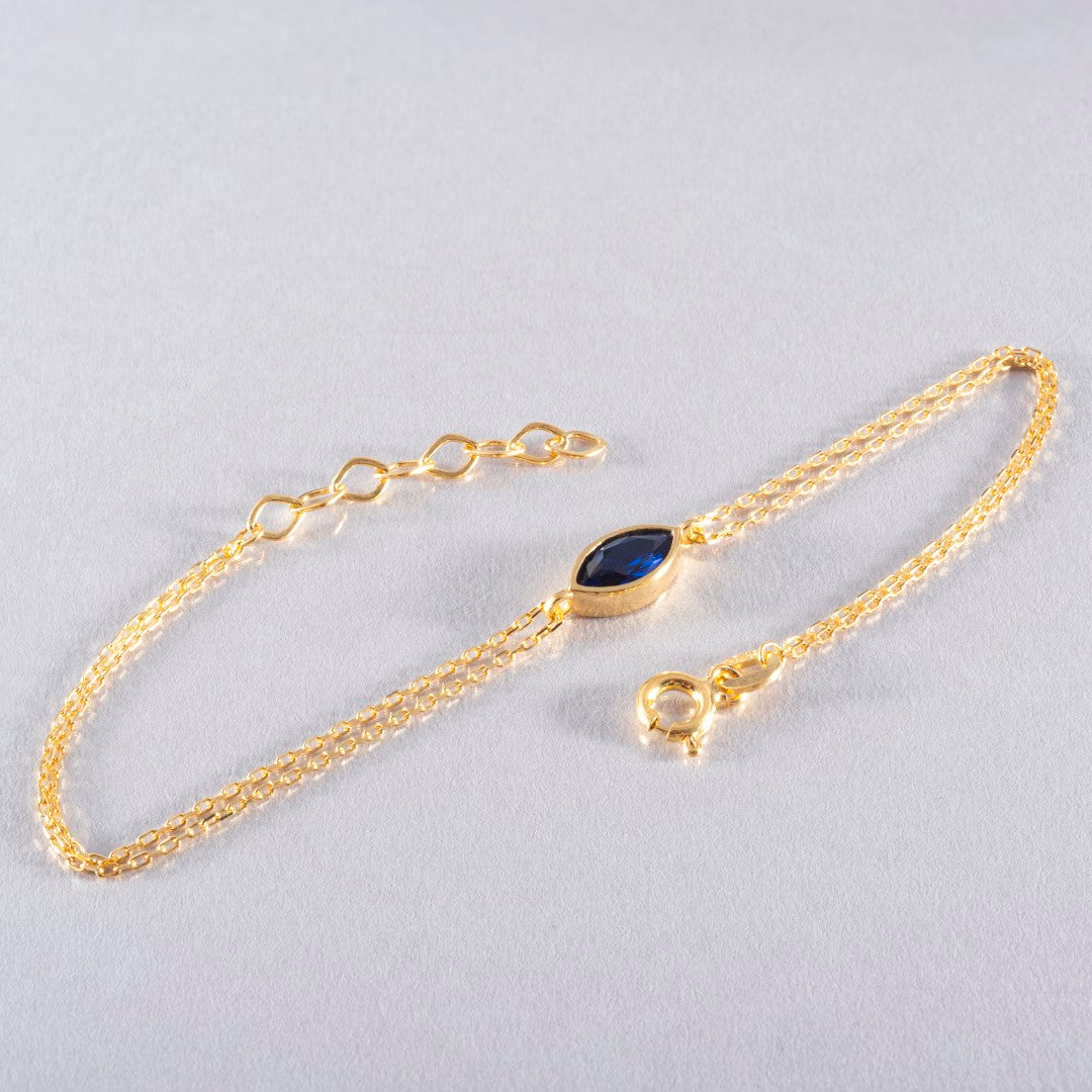 Bezel Marquise Cut Sapphire Bracelet 14K Solid Gold, September Birthstone Jewelry