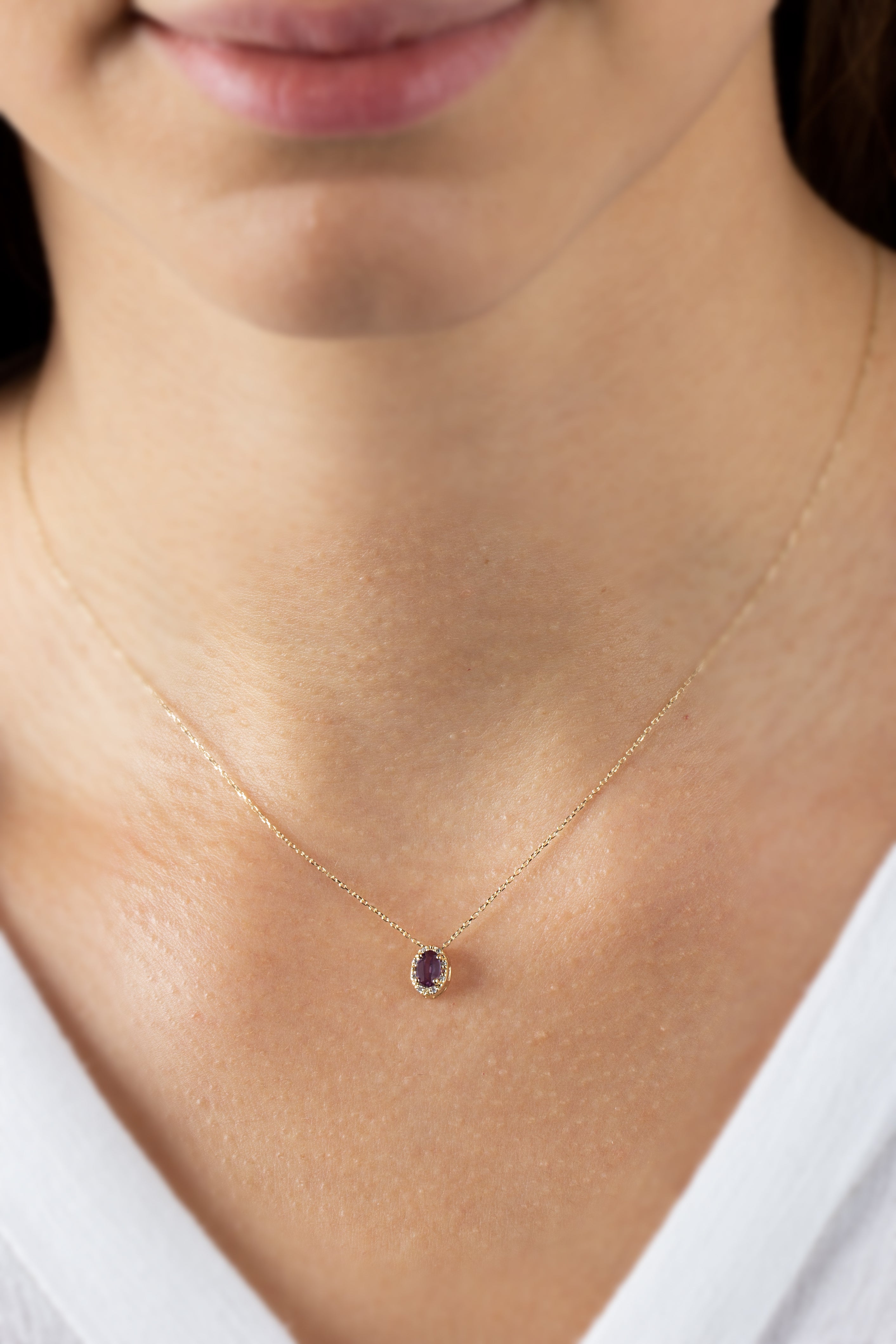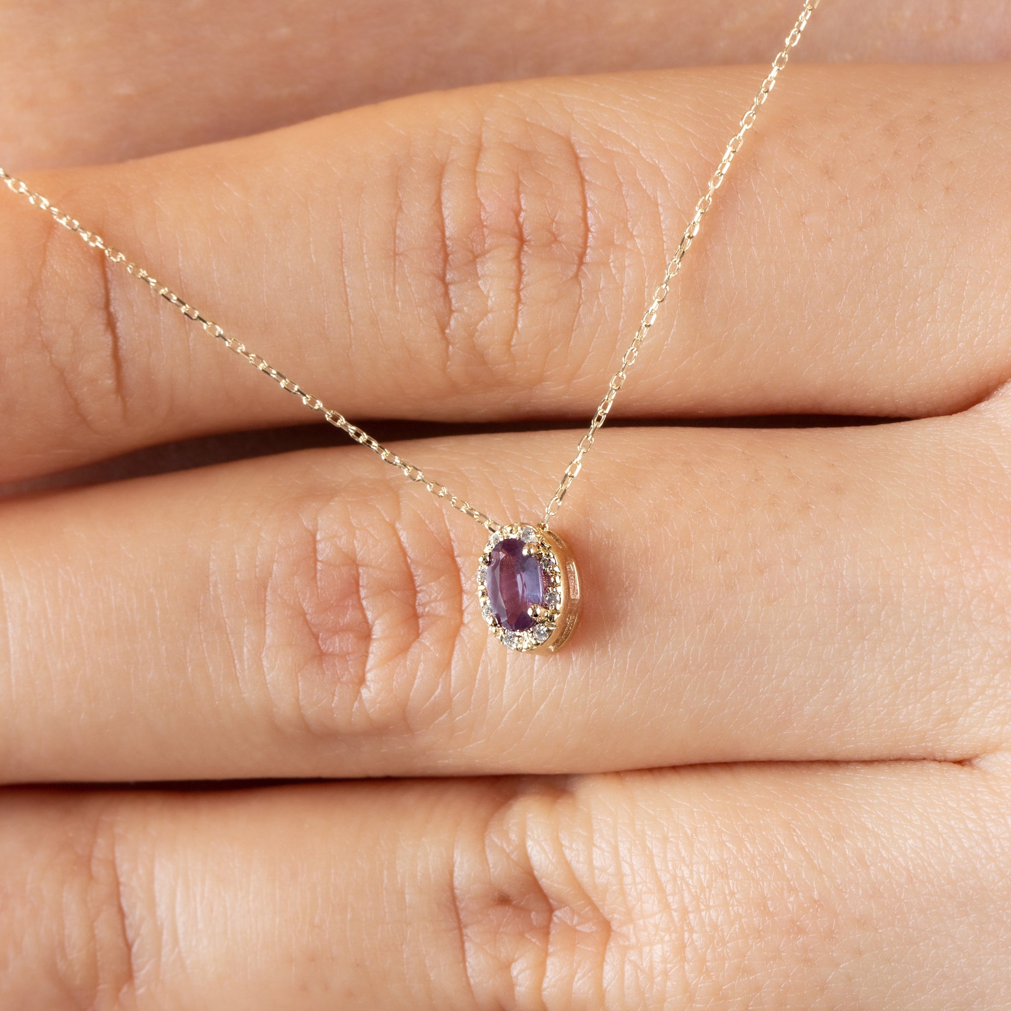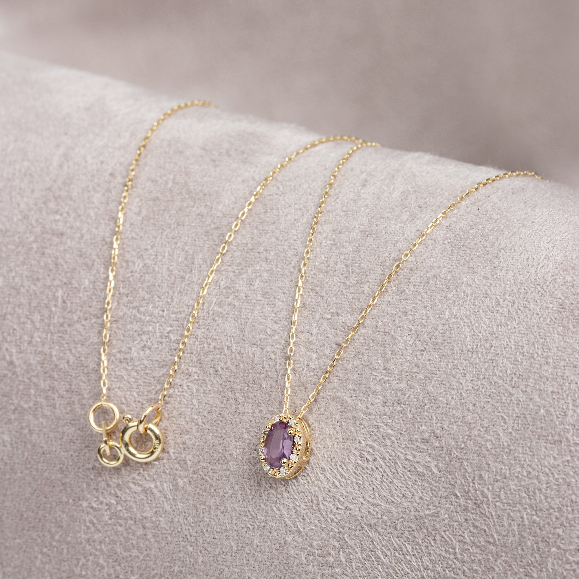 Alexandrite Round Necklace in 14K Solid Gold | June Birthstone Pendant
