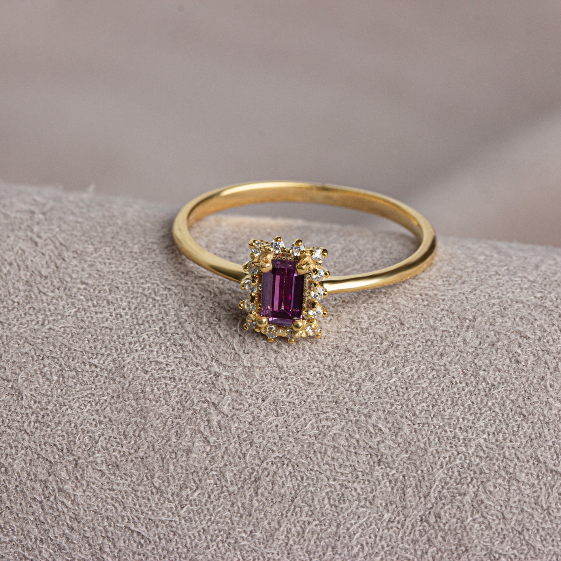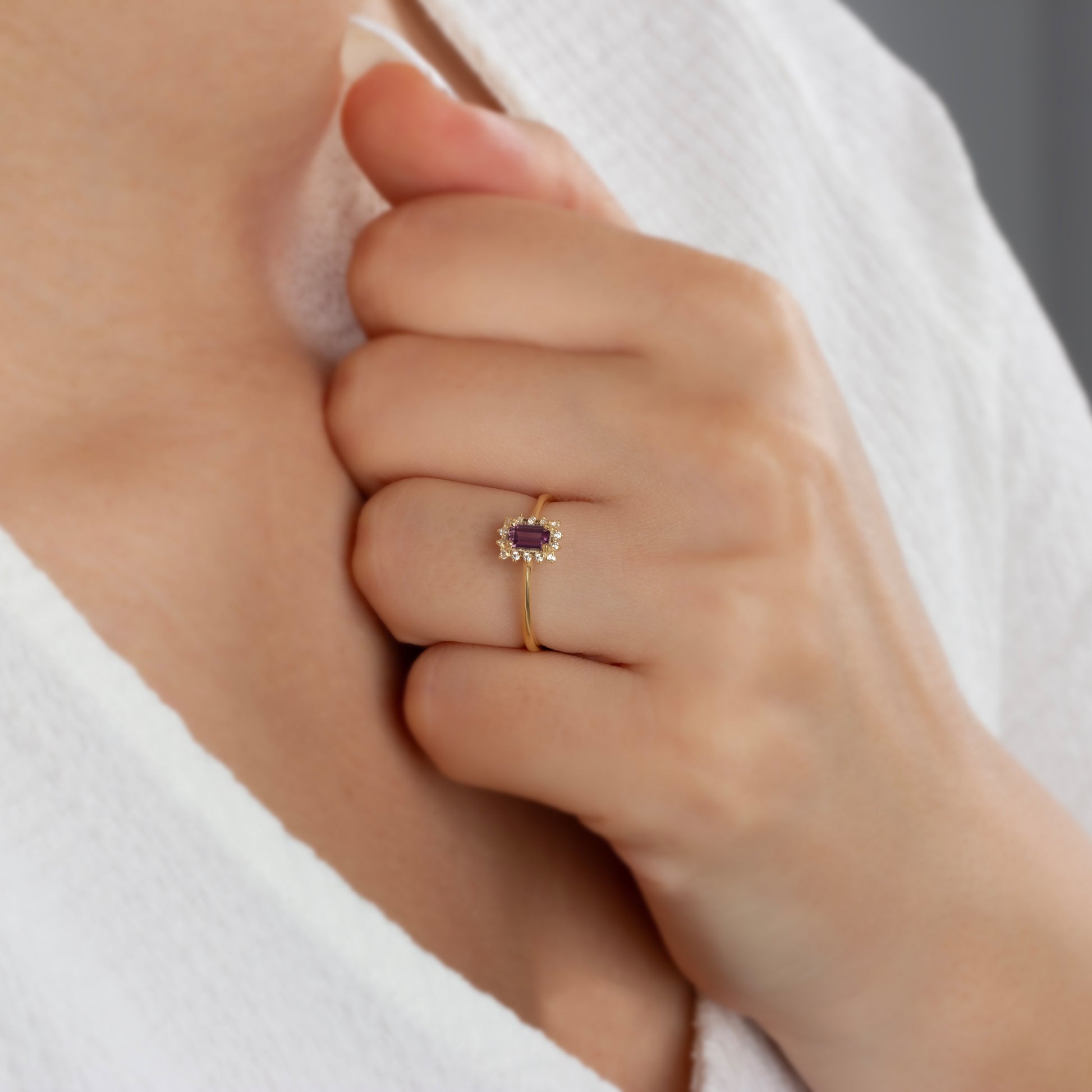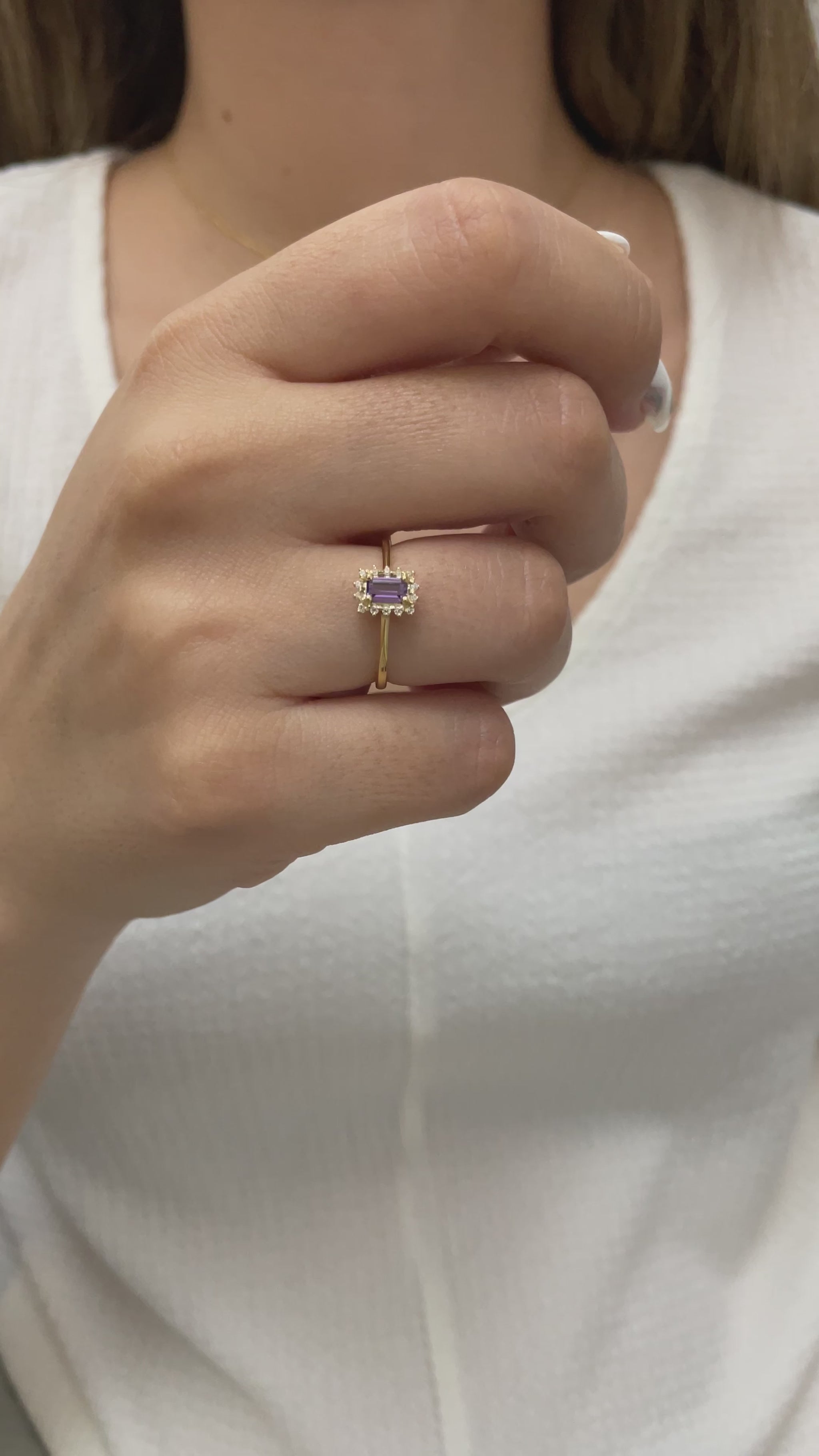 Our rectangular amethyst stone ring surrounded by real diamonds will add elegance to your hands. It is a ring that you can use both on special occasions and in daily life. It is a beautiful and stylish product that you can gift to yourself and your loved ones.