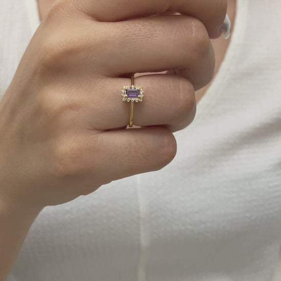 Amethyst Rectangle Ring with Real Diamonds, 14K Solid Gold