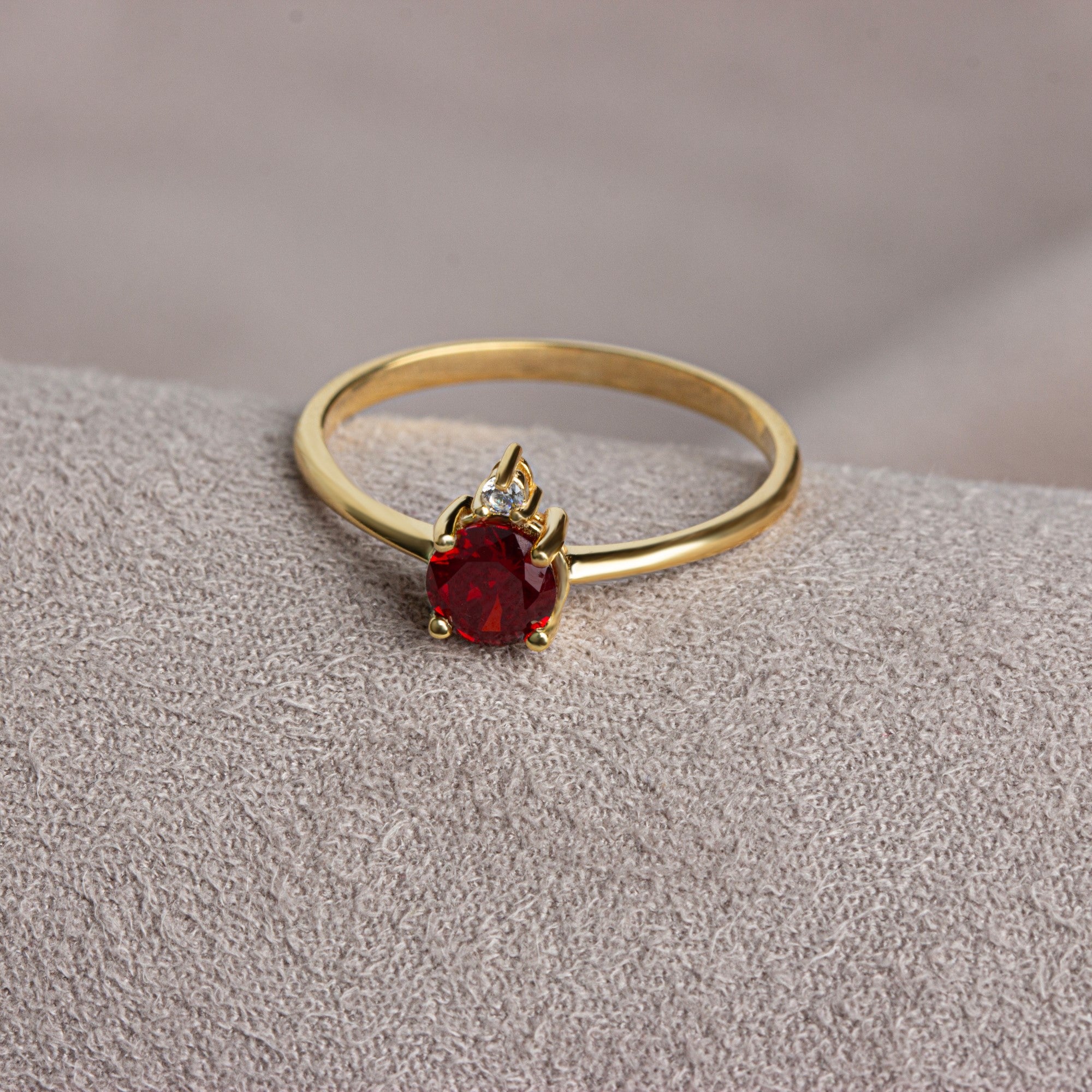 Meet the essence of elegance: Solitaire garnet ring.