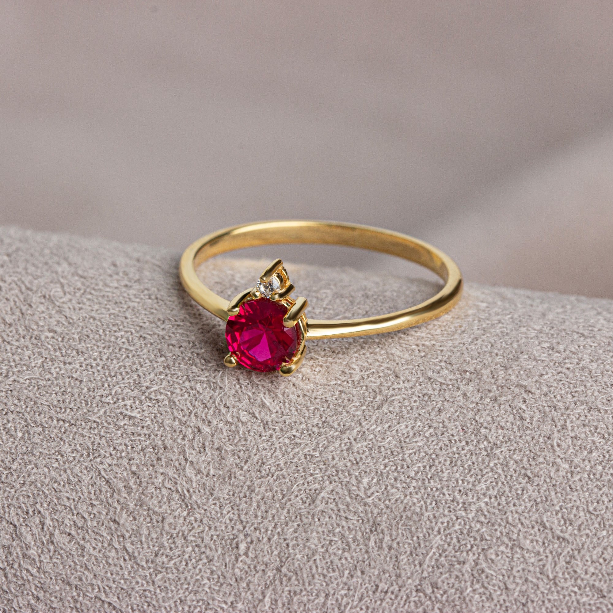 Round Ruby Ring in 14K Solid Gold with Single Stone Real Diamond, July Birthstone Jewelry