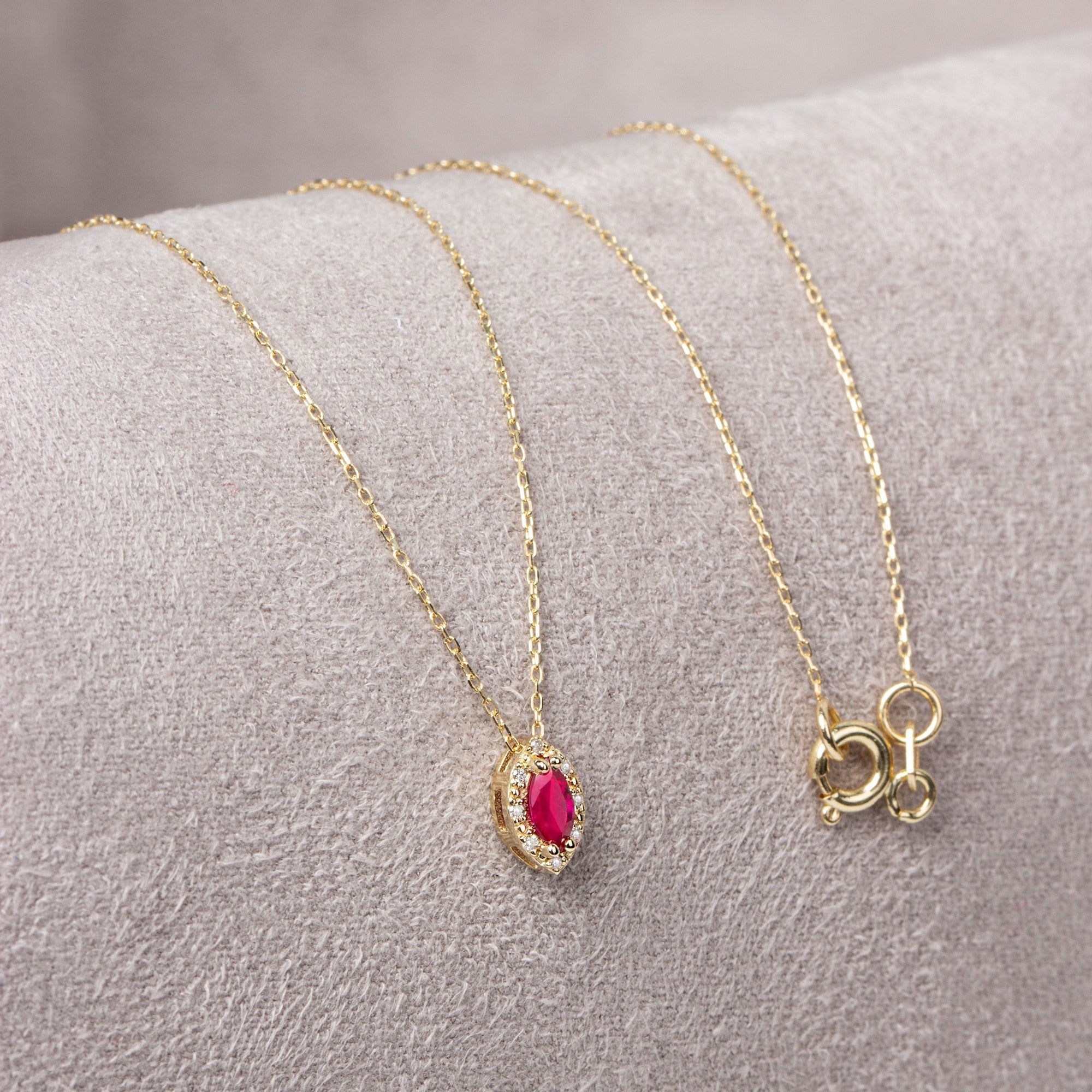 Ruby Marquise Cut Necklace in 14K Solid Gold with Real Diamonds, July Birthstone