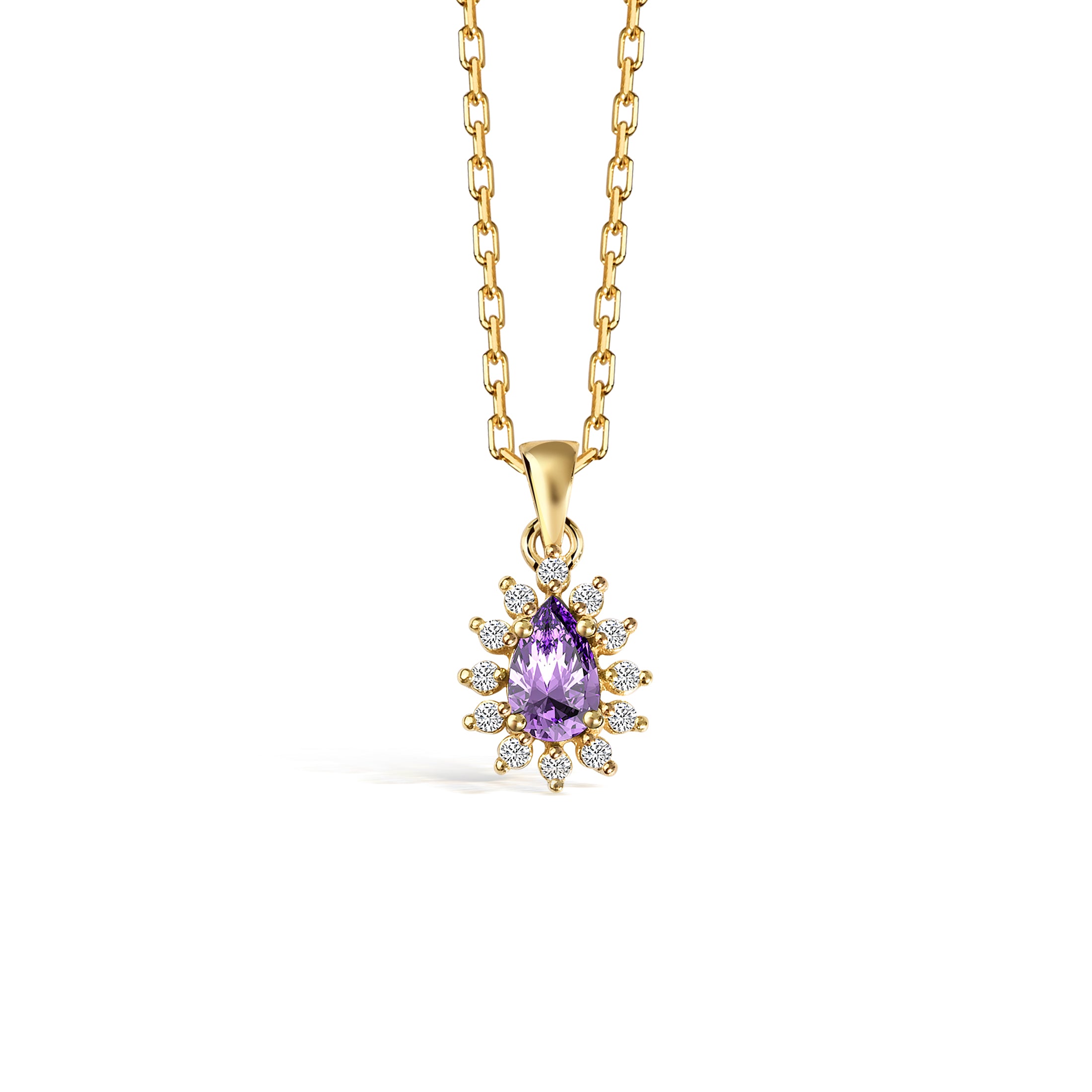 Teardrop Alexandrite Necklace surrounded by Real Diamonds 14K Solid Gold, June Birthstone