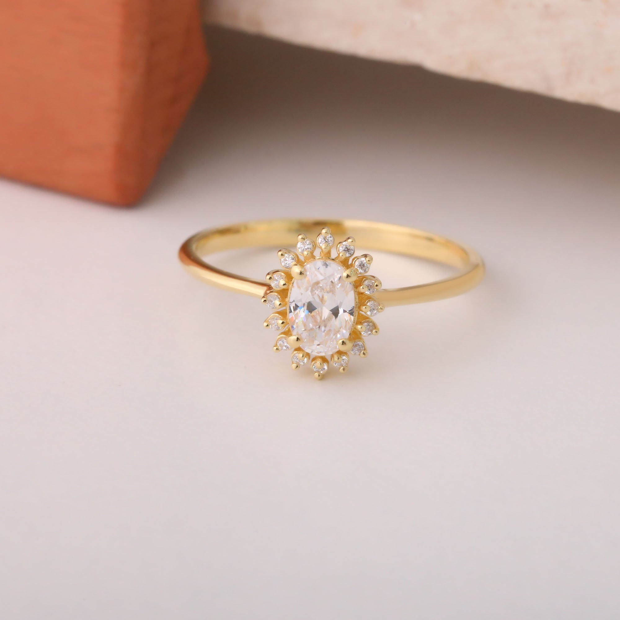 White Topaz Oval Ring 14K Solid Gold Surrounded by Real Diamonds, April Birthstone Gift
