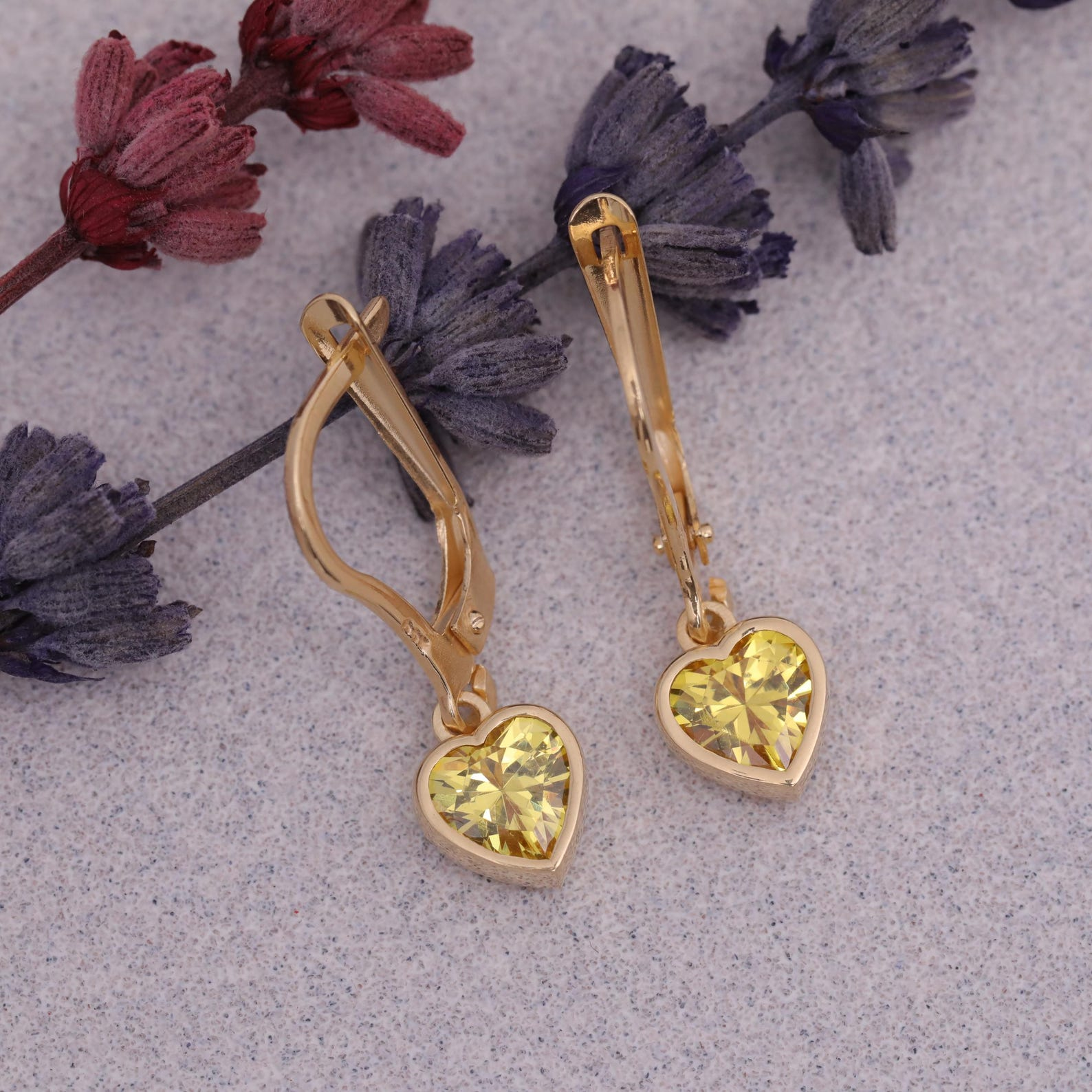 Indulge in the radiant beauty of these 14K Solid Gold Yellow Topaz Dangle Earrings. These exquisite earrings feature a heart-shaped Yellow Topaz, its warm golden hue radiating with a captivating brilliance that will warm your heart and illuminate your spirit. Delicately suspended from a polished 14K solid gold setting, these earrings are more than just an accessory.